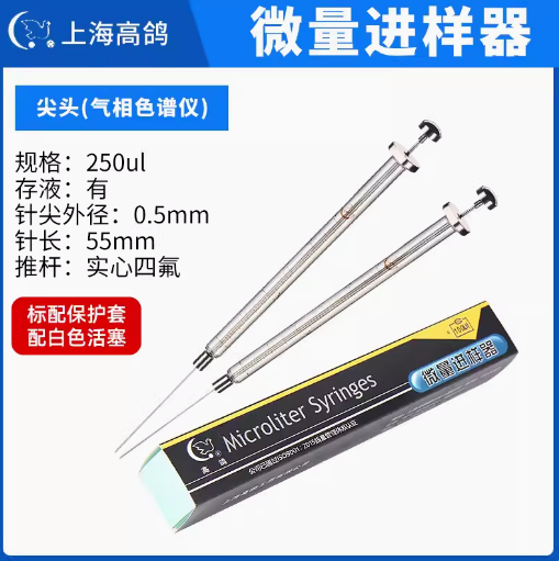 上海高鸽 微量进样器色谱用尖头气相平头液相进样针 250ul 尖头(气相)带白色活塞 (SKU:yzwhyp946927