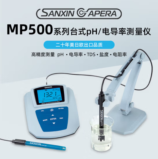 首页 > 仪器仪表 > 电化学分析仪器 > 三信沛瑞(SANXIN APERA)台式双参数pH计/电导率仪水质检测仪高精度实验室水分检测仪测试 MP522型精密pH/电导率测量仪 (SKU:yzwhyp947154