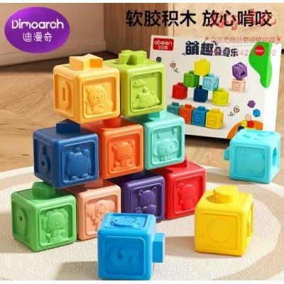 迪漫奇婴儿玩具软胶积木可啃咬6-12个月早教捏捏乐儿童抓握训练12件套 (SKU:yzwhyp947171