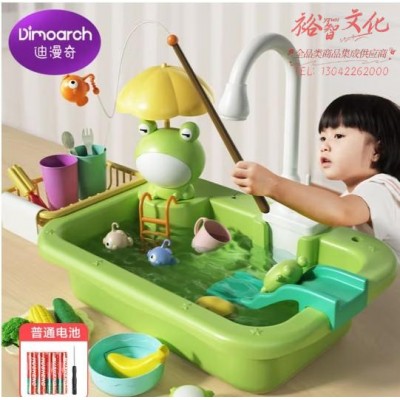 迪漫奇儿童洗碗机玩具电动出水洗碗洗菜池玩水过家家厨房玩具洗碗台小女孩3-6岁男孩宝宝生日礼物青蛙款 (SKU:yzwhyp947203