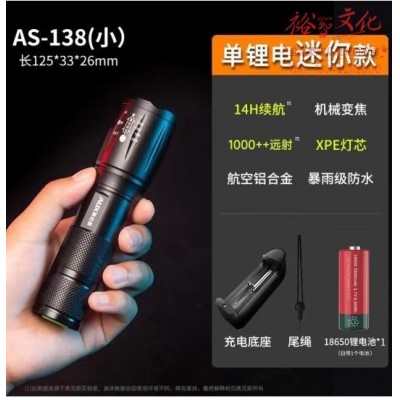 奥克斯强光手电筒超亮户外迷你便携充电式远射电筒小型LED灯家用 (SKU:yzwhyp947686