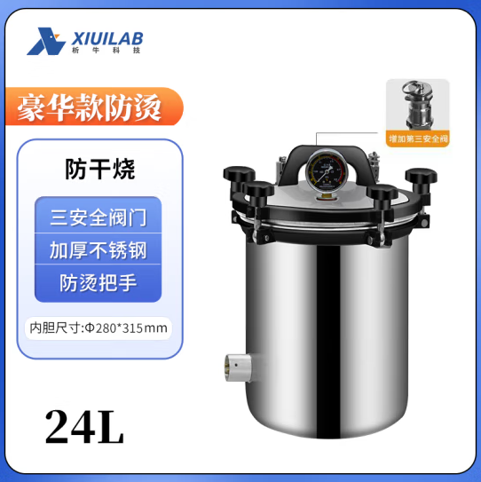析牛科技 手提式灭菌锅高压高温蒸汽杀毒锅灭菌设备实验室 豪华款24L防干烧 (SKU:yzwhyp947732