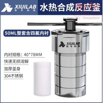 析牛科技 不锈钢水热合成反应釜高温高压实验室消解罐含内衬 50ml整套 (SKU:yzwhyp947788