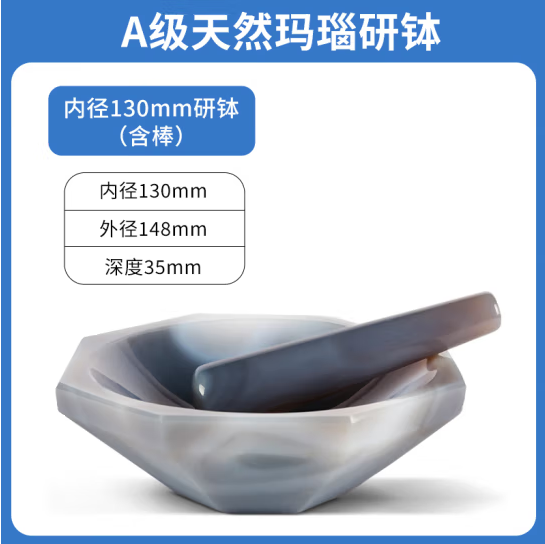 析牛科技 实验室玛瑙研钵抗耐磨乳钵样品研磨钵抗腐蚀带棒 内径130mm含棒 (SKU:yzwhyp947851