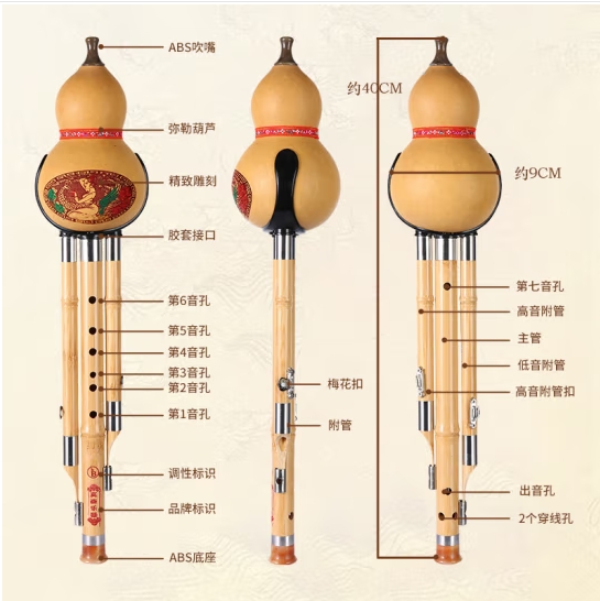 莫森(MOSEN)葫芦丝三音降B调防摔 初学者双白铜金丝楠竹MS-159B 原木色款 (SKU:yzwhyp947868