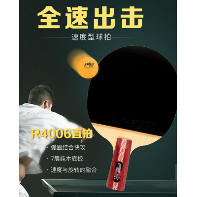 红双喜(DHS)乒乓球拍 直拍双面反胶弧圈结合快攻4星级四星级R4006(单支装)