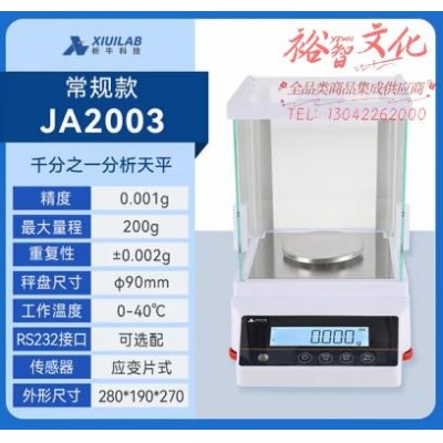 首页 > 仪器仪表 > 分析天平及专用天平 > 析牛科技 实验室分析天平高精度电子天平秤QS认证 千分之一JA2003 (SKU:yzwhyp947960