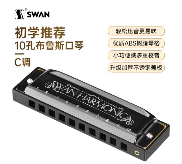 天鹅(SWAN)10孔布鲁斯口琴升级款黑色C调 (SKU:yzwhyp948065