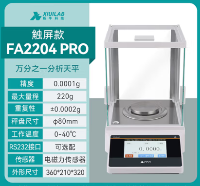 析牛科技 实验室分析天平高精度电子天平秤QS认证 万分之一FA2204P触屏 (SKU:yzwhyp948073
