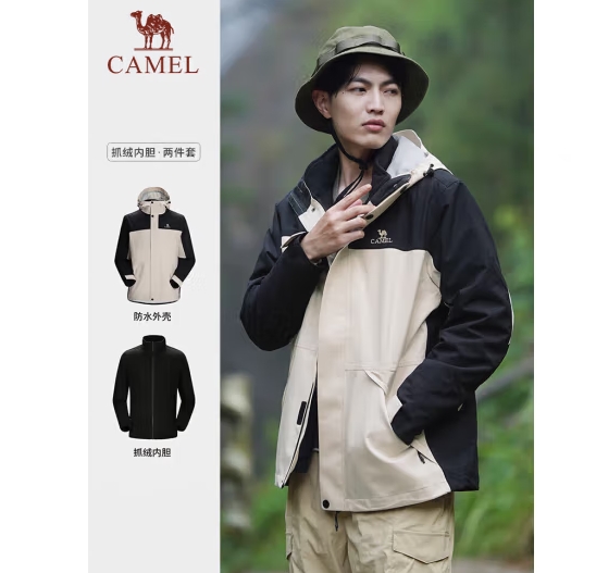 骆驼(CAMEL)户外防寒冲锋衣三合一抓绒保暖登山服 7A12260001 燕麦灰/幻影黑 (SKU:yzwhyp948457