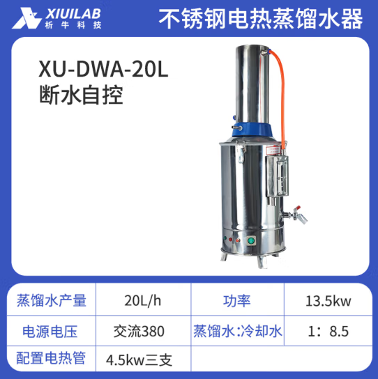 析牛科技 实验室不锈钢电热蒸馏水器纯水器工业家用测量仪器 XU-DWA-20L (SKU:yzwhyp948560