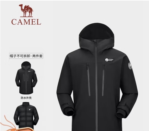 骆驼(CAMEL)鹅绒冲锋衣男三合一羽绒服内胆登山服 熊猫系列 黑M A13CATaG042 (SKU:yzwhyp948840