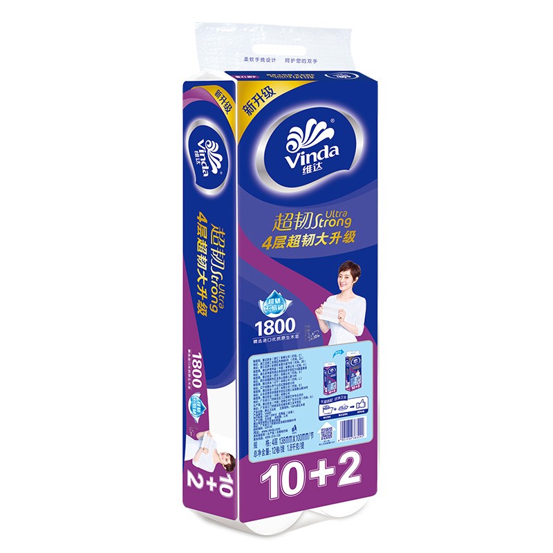 首页 > 办公用品 > 卫生用纸制品 > 维达(Vinda) V4492 4层加厚 1800克/提 12卷卫生纸 卷类卫生纸SKU:yzwhyp949112