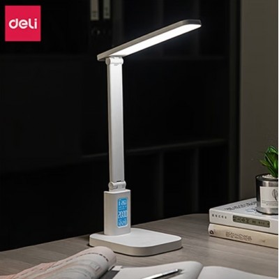得力(deli)LED可折叠台灯 时间温度日期同屏显示带闹钟床头灯夜灯卧室台灯 17859