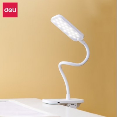 得力(deli) LED夹子台灯 一键触控无极调光 台夹两用床头灯学生台灯 白色 17858