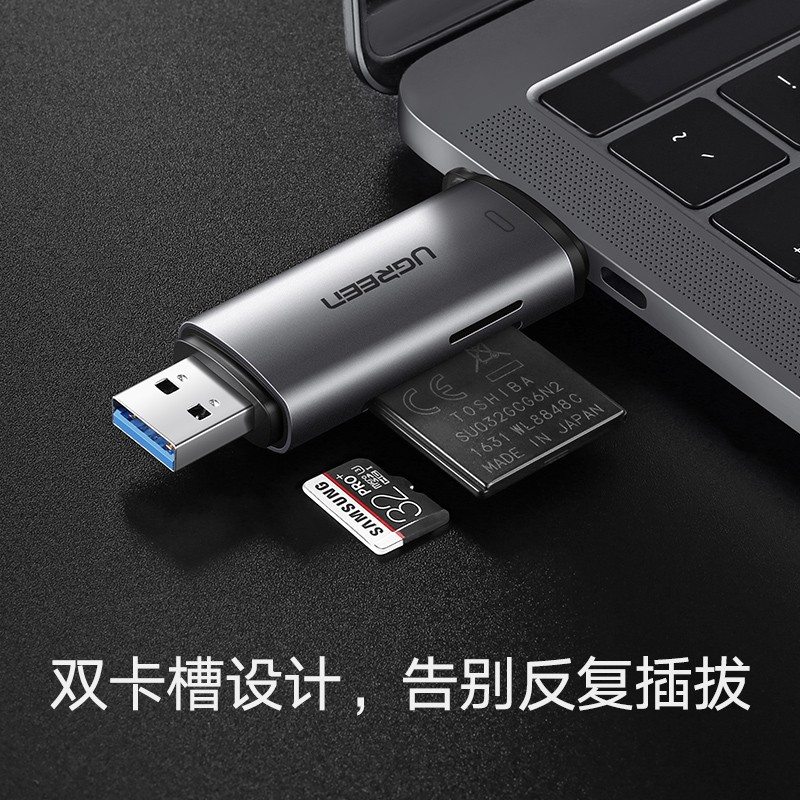 绿联 USB/Type-C读卡器3.0高速 SD/TF多功能合一电脑手机iPad读卡器 支持相机无人机行车记录仪存储内存卡SKU:yzwhyp949492