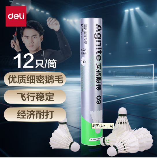 得力(deli)羽毛球比赛训练耐打鹅毛羽毛球 F2209 12只/筒SKU:yzwhyp949521