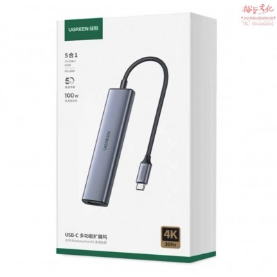 绿联(UGREEN)15495 数据线 多功能扩展坞5合1USB-C转HDMI转接头SKU:yzwhyp949734