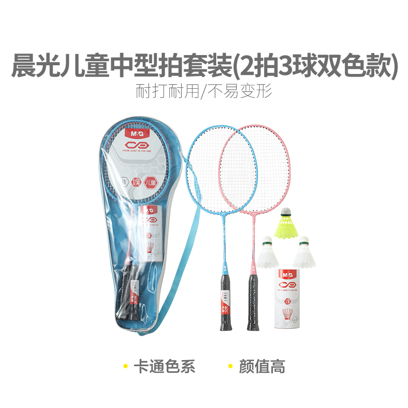【入门级】晨光体育羽毛球拍儿童中型拍套装(2拍3球双色款)AST09302SKU:yzwhyp949951