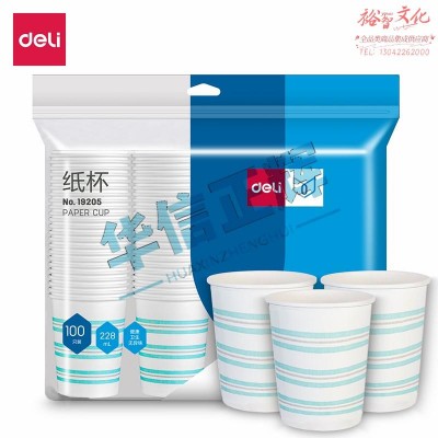 得力 19205纸杯(白)(228ml)(100只/包).SKU:yzwhyp950049