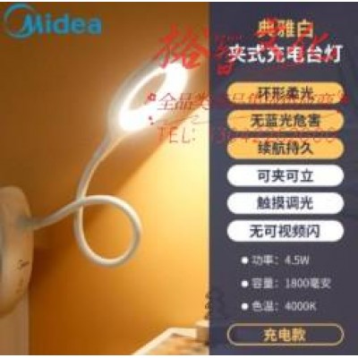 美的 (Midea)led台灯儿童学生学习阅读夹子灯宿舍寝室卧室床头书桌夹式小台灯可usb充电典雅白SKU:yzwhyp950792
