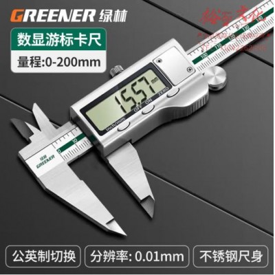 绿林(GREENER)200mm高精度电子数显游标卡尺 大屏不锈钢高清数显 符合国标0-200mmSKU:yzwhyp951059