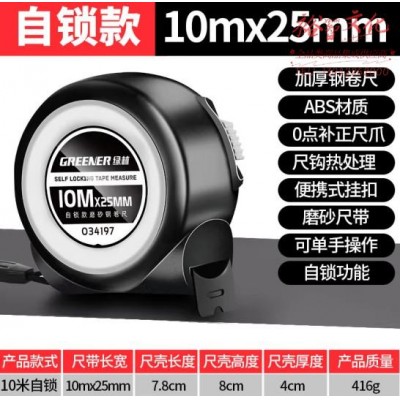 绿林(GREENER)10米高精度加厚加硬盒尺 防割自锁钢卷尺 10mx25mm 034197SKU:yzwhyp951060