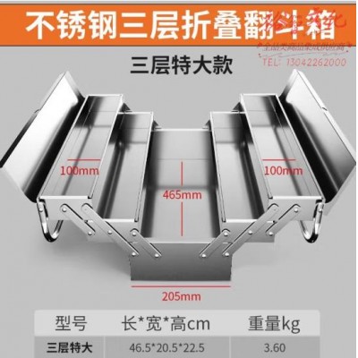 绿林(GREENER)不锈钢工具箱 多功能大号手提式收纳盒 翻斗箱三层折叠特长款023126SKU:yzwhyp951076