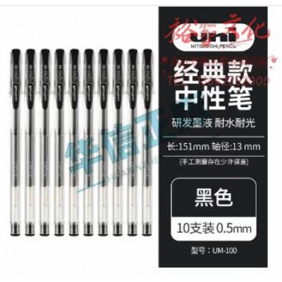 三菱(Uni)UM-100/0.5mm(黑色)学生用中性笔签字笔(替芯UMR-5)10支装SKU:yzwhyp951110