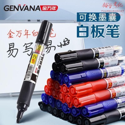 金万年(Genvana) 0321换墨囊白板笔直液式DS0608 可加墨大容量玻璃大号粗头墨写字加粗 0635蓝色白板笔(10支装)SKU:yzwhyp951169