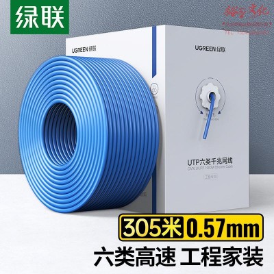 绿联 六类千兆网线【0.57±0.008mm纯铜线芯】CAT6类非屏蔽双绞线 家装网络POE监控布线工程箱线 305米SKU:yzwhyp951842