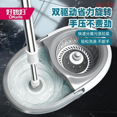 好媳妇双驱动旋转拖把免手洗家用一拖净地拖桶吸水拖布懒人神器不锈钢篮SKU:yzwhyp951852