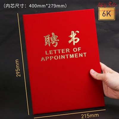 聘书(红)6k 绒面烫金工艺红色(10本装)SKU:yzwhyp951911