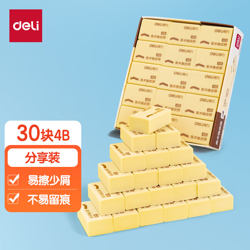 得力(deli)学生橡皮擦中考高考绘画4B黄色美术绘图考试橡皮 学生文具学习用品 30块装 7534SKU:yzwhyp951954