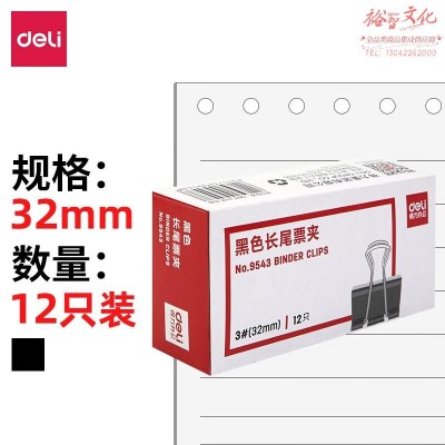 得力(deli)32mm超大号金属黑色长尾夹/票据夹/燕尾夹/票据文件夹子 12只【9543票夹/12只】SKU:yzwhyp952035