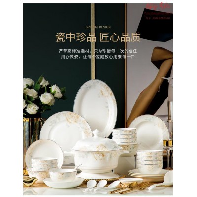 辰景德镇68头餐具整套碗碟套装家套餐碗筷盘子乔迁送礼金枝玉叶SKU:yzwhyp952052