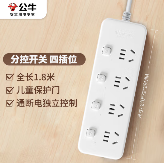 公牛(BULL)GN-B2040插座插排接线板超大间距4孔/1.8米//GN-B2040SKU:yzwhyp952176