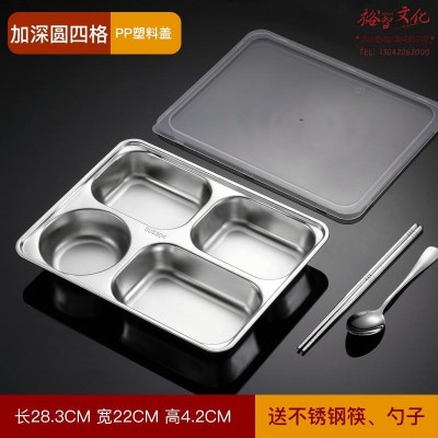 304不锈钢餐盘四格 快餐盘成人学生食堂加厚饭盒 儿童餐盒单位打饭盘无盖SKU:yzwhyp952225
