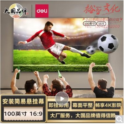 得力(deli)100英寸16:9白塑挂壁 悬挂投影幕布 适配坚果极米当贝小米投影机幕布SKU:yzwhyp952583