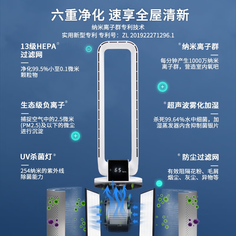 夏普SHARP无叶风扇家用无叶扇纳米离子净化除菌直流智能变频暴风轻音低噪摇头办公室立式塔扇节能省电 884521SKU:yzwhyp952976