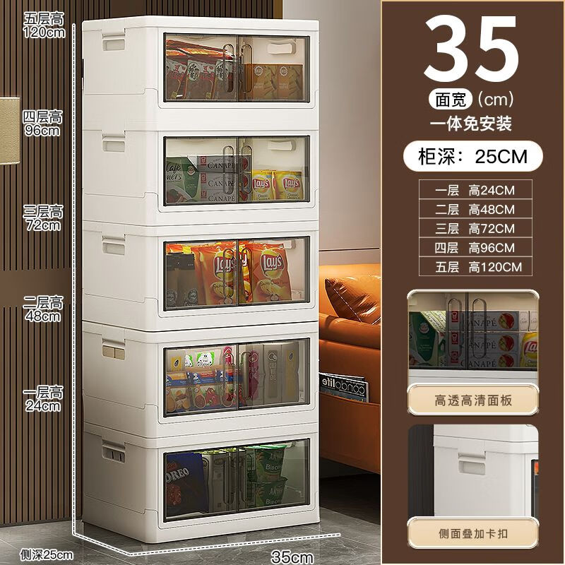 朴珀妮收纳柜折叠收纳箱家用客厅柜子免安装零食置物柜整理箱 35面宽 三层SKU:yzwhyp952978
