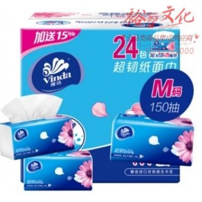 维达(Vinda) 抽纸 超韧3层150抽软抽纸巾*24包(中规格) 整箱SKU:yzwhyp953218