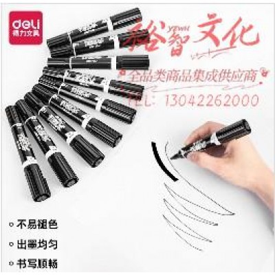 得力S555大双头记号笔(黑)10支/盒 SKU:yzwhyp953265
