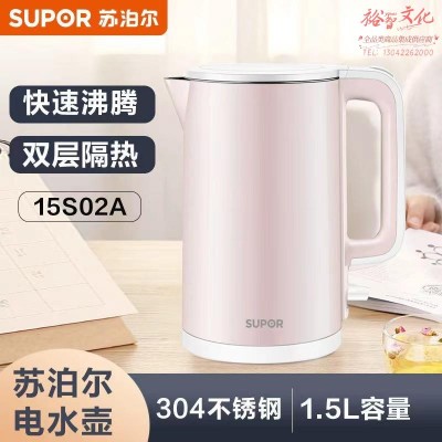 苏泊尔SW-15S02A 电热水壶家用1.5L大容量自动烧水壶 食品级不锈钢内胆 双层保温防烫SKU:yzwhyp953466