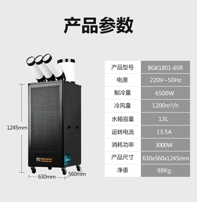 宝工电器(BGE)工业移动空调压缩机一体式冷风机 3匹 6500W双管 数字控温SKU:yzwhyp953500