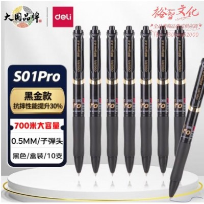 得力(deli)S01升级款 大容量弧度收口按动中性笔办公笔水笔 0.5mm子弹头黑色 10支/盒S01Pro-10SKU:yzwhyp953538