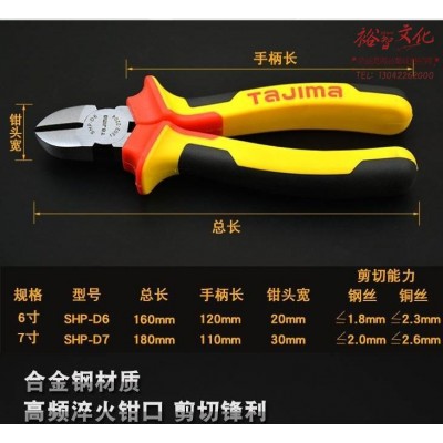 田岛(TAJIMA)SHP-D7 美式斜嘴钳7寸 偏嘴钳偏口钳子 斜咀钳偏咀钳 180mm 1202-2205SKU:yzwhyp953607