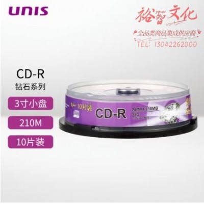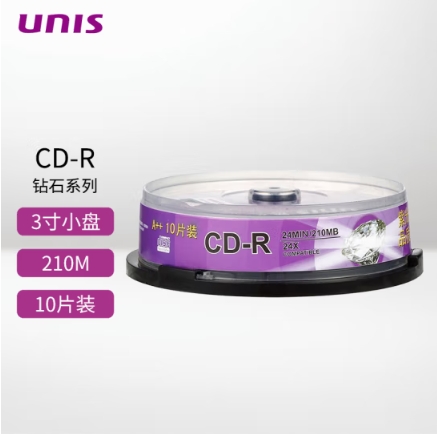 紫光(UNIS)CDR光盘 钻石系列 8CM(3寸)小盘 24速 刻录盘 空白光盘 碟片210M 桶装10片 A SKU:yzwhyp953785