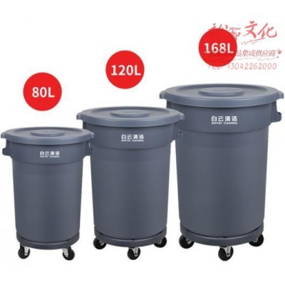 白云清洁 AF07501 168L大号圆形桶垃圾桶储物水桶物业用蓄水桶 带盖四轮底座SKU:yzwhyp953929