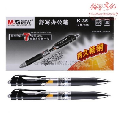 晨光K35按动中性笔签字笔水性笔按动子弹头经典办公笔医生用处方笔0.5mm 12支 黑色SKU:yzwhyp954278